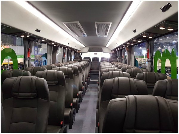 Driven by a mixture of diesel and battery, it can accommodate up to 49 passengers.