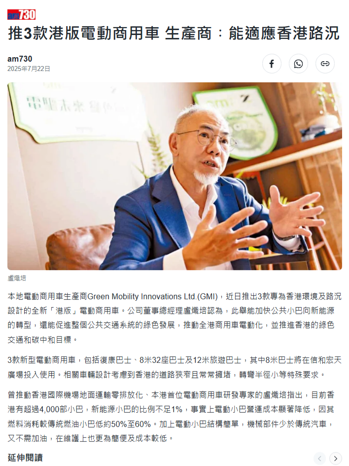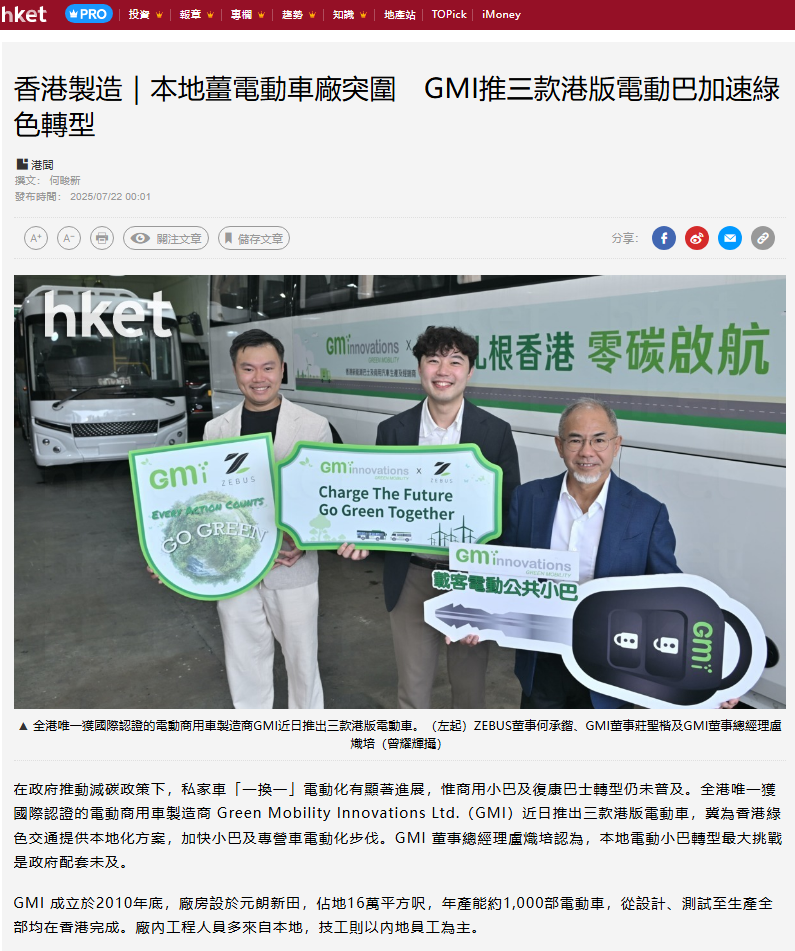 全港首部插電式油電混合旅遊巴亮相!香港 GMi 設計研發